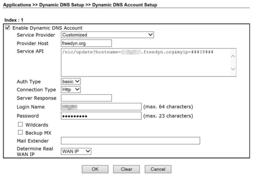 In der Oberfläche bei Dynamic DNS einen Service vom Typ 'custom' definieren und z.B. 'freedyn' nennen.