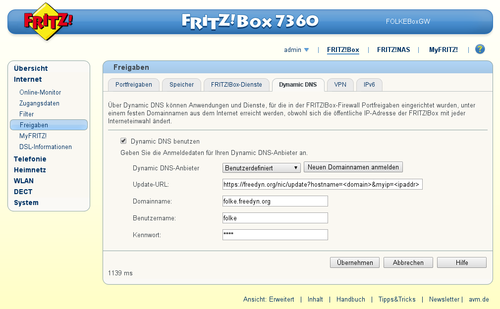 Die Update-URL-Adressen von FreeDyn.org lauten: